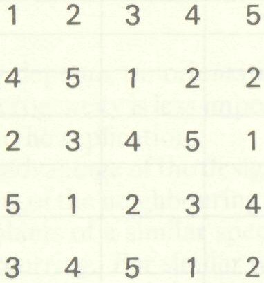 As was stated above, agroforestry experiments can use the same designs that are used in single-species agronomic or forestry experiments. However, I want in this section to look at one or two more unusual designs which are particularly useful for agroforestry. Figure 6 shows an example of a nearest-neighbour design; it can be seen that each treatment occurs next to each other treatment (i.e. to the right, left, above or below) on four occasions. Thus any deleterious or beneficial effects of one treatment on its neighbours should balance out. This may permit some reduction in the area needed for guard rows, although it is still preferable to have an adequate guard row in order to minimize such interactions. More complex designs taking account of the relative positions of the treatments are to be found in Freeman (1979). Analysis of these designs can be by the usual methods for Latin squares or special nearest-neighbour methods can be used. The latter form of analysis is still the subject of statistical research, but involves adjusting each treatment by the yield (or whichever variable is being measured) of the neighbouring plots in order to remove the effect of local heterogeneity. Nearest-neighbour analyses are of particular relevance to agroforestry since it may be possible to adjust the yields of one species in a two-species system by the yields of neighbouring plants of the other species. Designs balanced for neighbours have also been worked out for the situation where plots are arranged in a long strip, so that only two neighbours need to be considered. These designs and their analysis are considered by Dyke and Shelley (1976).